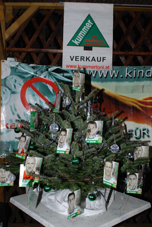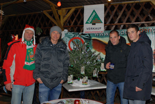 Stefan Kulovits, Christopher Drazan und Markus Katzer mussten einen grün-weißen Weihnachtsbaum schmücken. Obwohl Sie mit Weihnachtsbaumaufputz nichts am Hut haben, wurde der Auftrag "meisterlich" erledigt. Mit Autogrammkarten bespickt erstrahlte der kleine Baum sehr festlich und nach längerer Diskusion steckte Stefan Kulovits seine Autogrammkarte an die Baumspitze.
