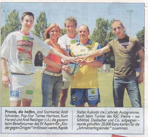 Das Team von "Kinder gegen Drogen" stellte der Obmann dieses Vereines Thomas Hetlinger zusammen!Ex-National Spieler Rupert Marko,Ex-Rapidler Christian Salaba,Hansis Cousin Robert Krankl,Starmaniac Andi Schneider,Schwechat Bomber Thomas Leonhardsberger,Eishockey Legende Kurt Harand,Ex-Rapdspieler Wolfgang Kienast,Sänger Gary Cope,Boxprofi Jürgen Himmler,Vorstandsmitglieder von Kinder gegen Drogen Thomas Illeditz und Günther Bissenberger, und noch viele mehr!