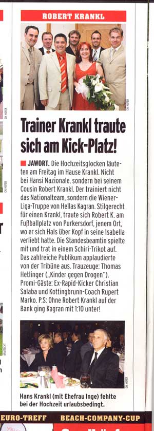 Am Freitag,den 18.Juni 2004 geben sich Isabella und Robert Krankl das berühmte "JA- WORT" der Welt.Sie heirateten und wie sollte es bei Robert anders sein,auf einem Fussballplatz.
