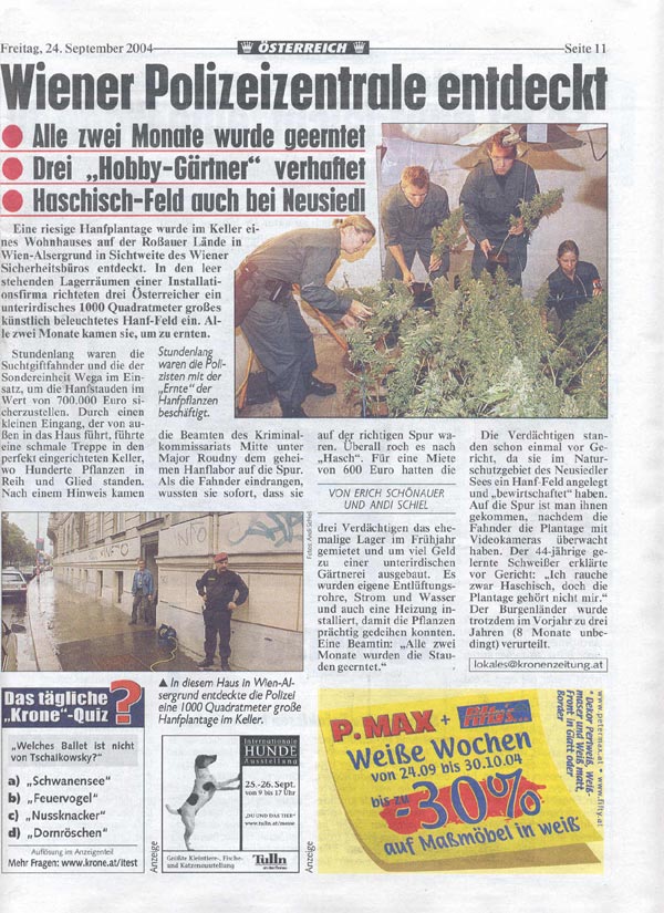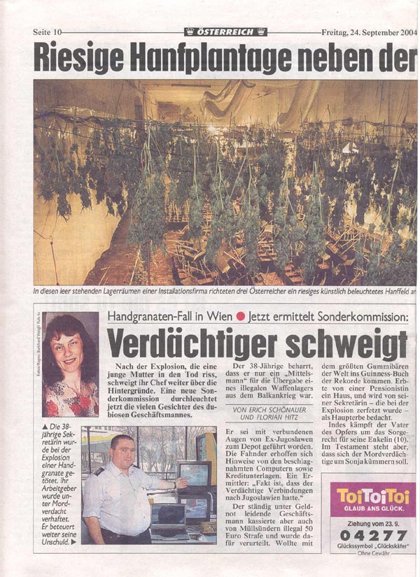 Neben der Sicherheitsbehörde bauten Sie sich eine riesige Hanfplantage! Gott sei Dank kam Ihnen die Polizei dahinter !